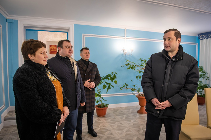 Губернатор Алексей Островский посетил с рабочим визитом Новодугинский район, в ходе которого проинспектировал качество выполнения капитального ремонта муниципального Новодугинского межпоселенческого культурно-досугового центра.