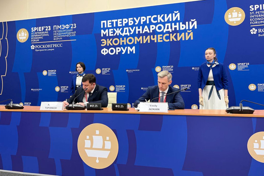 На площадке Петербургского международного экономического форума временно исполняющий обязанности Губернатора Василий Анохин и первый заместитель генерального директора Смоленского авиационного завода (СмАЗ) Андрей Топорков подписали соглашение о намерениях по реализации инвестиционного проекта, направленного на расширение производственных мощностей предприятия.