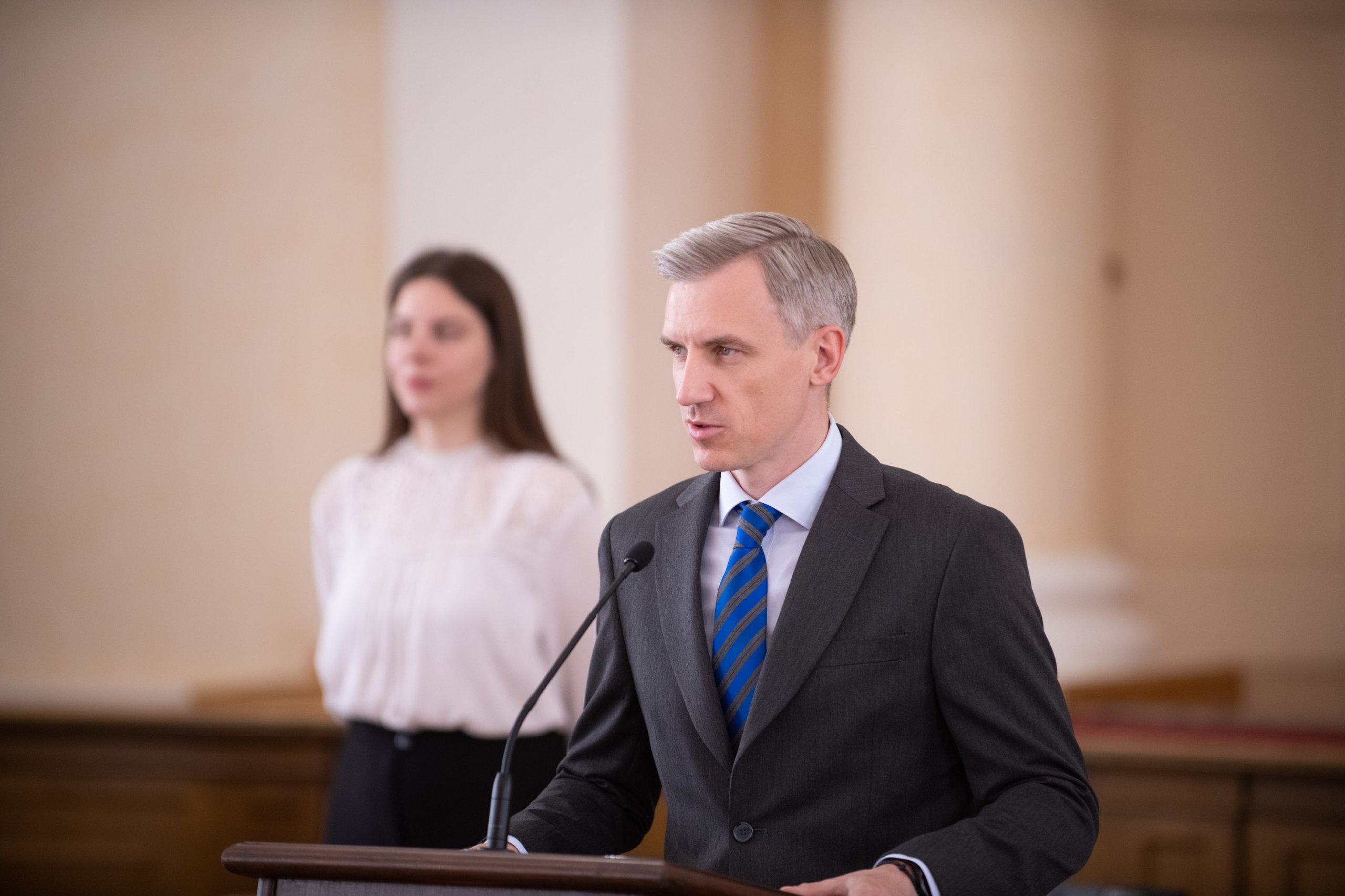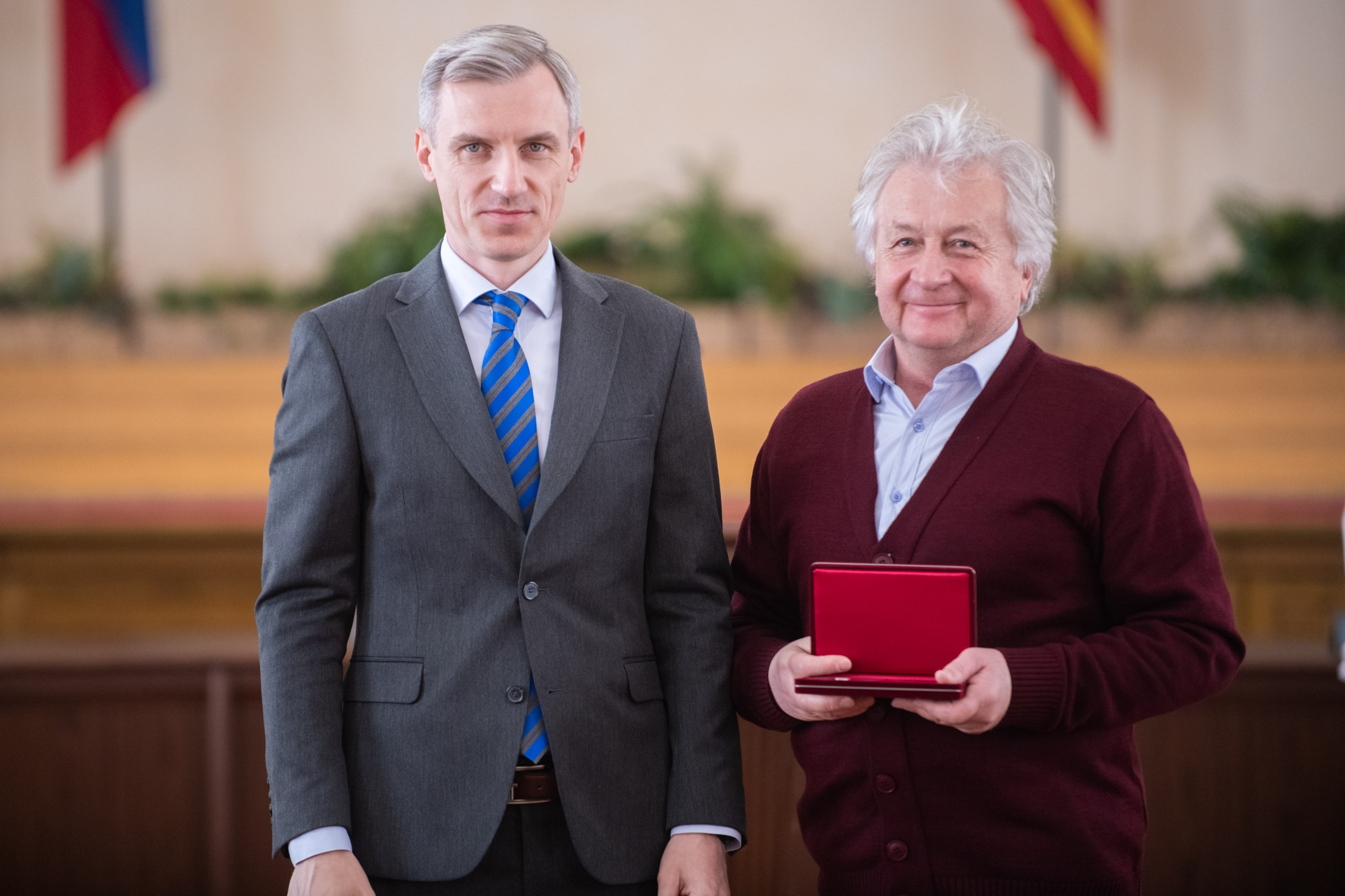 Губернатор Смоленской области Василий Анохин вручил к празднику государственные и областные награды отличившимся смолянам. В их числе – сотрудники ведущих промышленных предприятий региона, железнодорожники, медицинские работники, учёные, общественники.