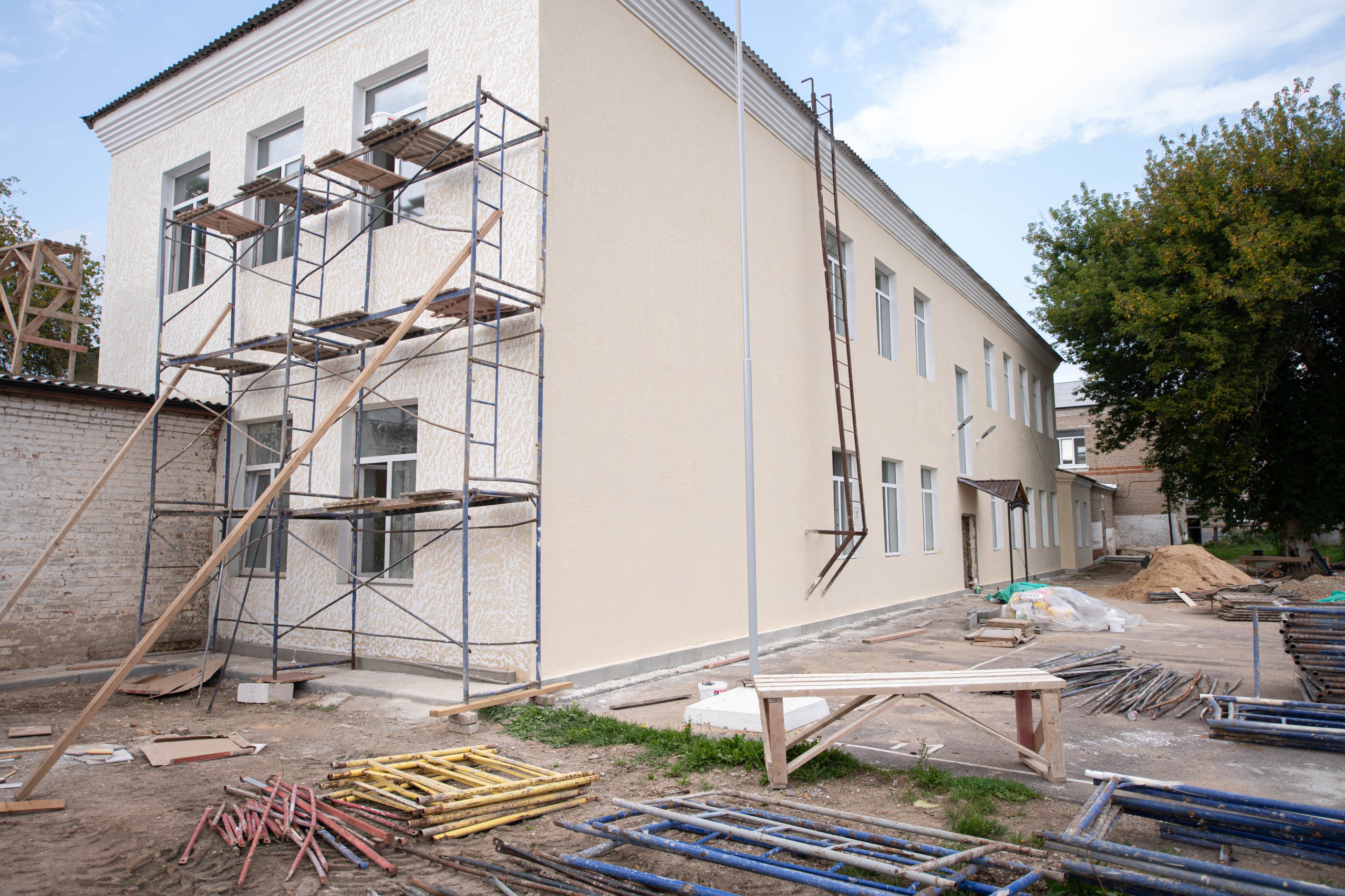 В "Краснинской СШ" завершено обновление внутренних электрических сетей, идёт ремонт кровли.