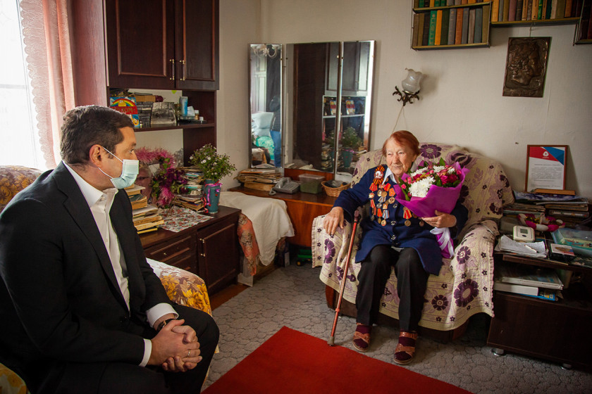 Губернатор подарил Александре Васильевне, отметившей в этом году свое 94-летие, цветы и тепло пообщался с почетной жительницей Вязьмы.