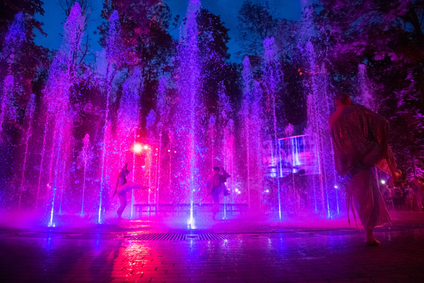 Концепция умного светомузыкального фонтана в саде «Блонье» была разработана по итогам опроса жителей Смоленска. Он выпускает в небо 146 струй, причём центральная достигает высоты в 21 метр. Его диаметр — 18 метров. С помощью современного мультимедийного оборудования можно транслировать на воду видео со звуком, поэтому фонтан выполняет не только развлекательную, но и образовательную функцию.