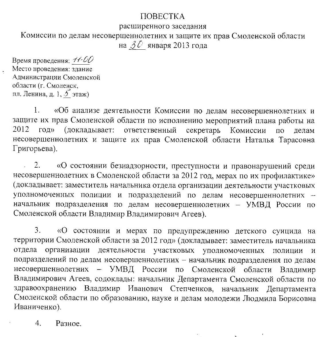 30 января в 11:00 в конференц-зале администрации области (пл. Ленина, 1, 5-й эт.) состоится расширенное заседание Комиссии по делам несовершеннолетних и защите их прав Смоленской области.